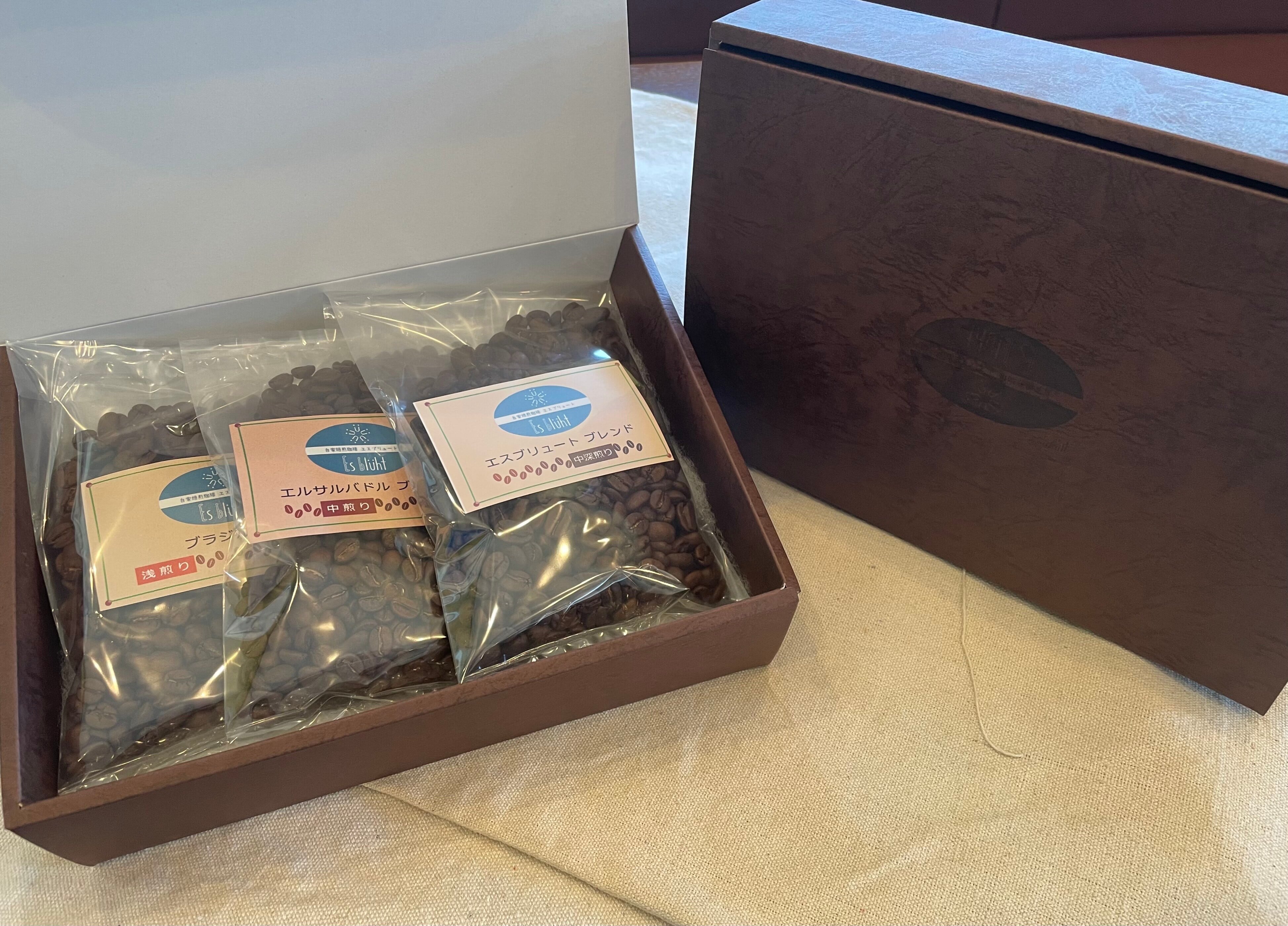 ・化粧箱1箱につき、300g(3袋)の珈琲豆を選択ください。